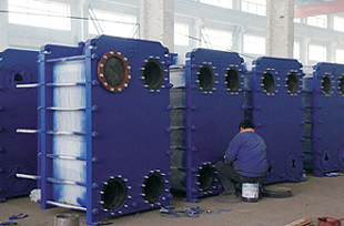 板式換熱器裝備后,每臺都要經過水壓試驗來檢驗是否泄漏,水壓試驗的壓力為設計壓力的1.25倍。水壓試驗合格后再進行表面處理、噴漆。