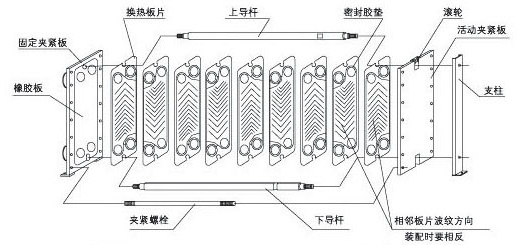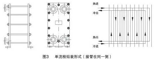 對于型號較大的換熱器,最好裝成單流程同側接管的形式,這樣便于拆裝維修,也便于夾緊板的夾緊。