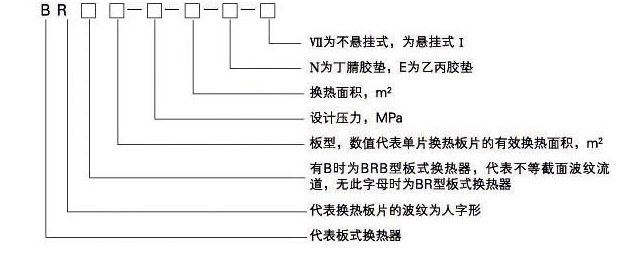 BR0.1是指單片換熱板片的有效換熱面積為0。1平方米,其它型號的意義相同。選擇某種型號采用不同數(shù)量的換熱板片就可組裝成所需換熱面積的換熱器。
